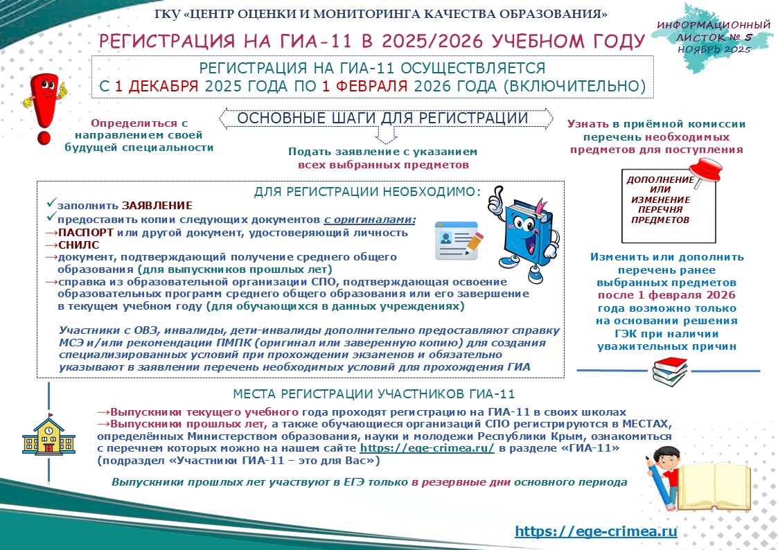 Сроки регистрации на ГИА-9с 22.12.2025 года по 01.03.2026 года | Сроки регистрации на ГИА-11с 01.12.2025 года по 01.02.2026 года включительно |