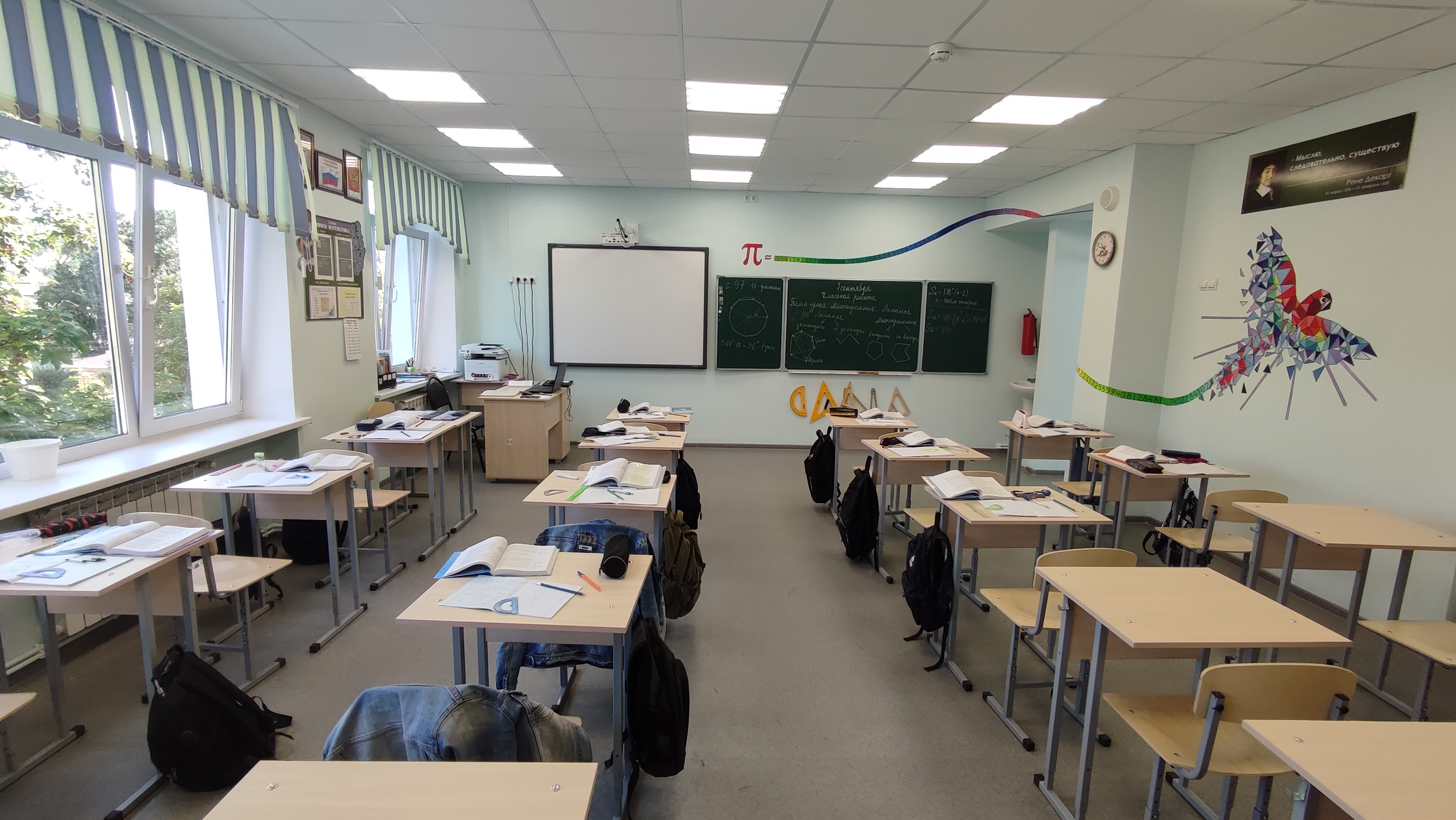 — 2 кабинета математики (оснащены мультимедийным оборудованием (интерактивная доска, ноутбук, проектор, экран);