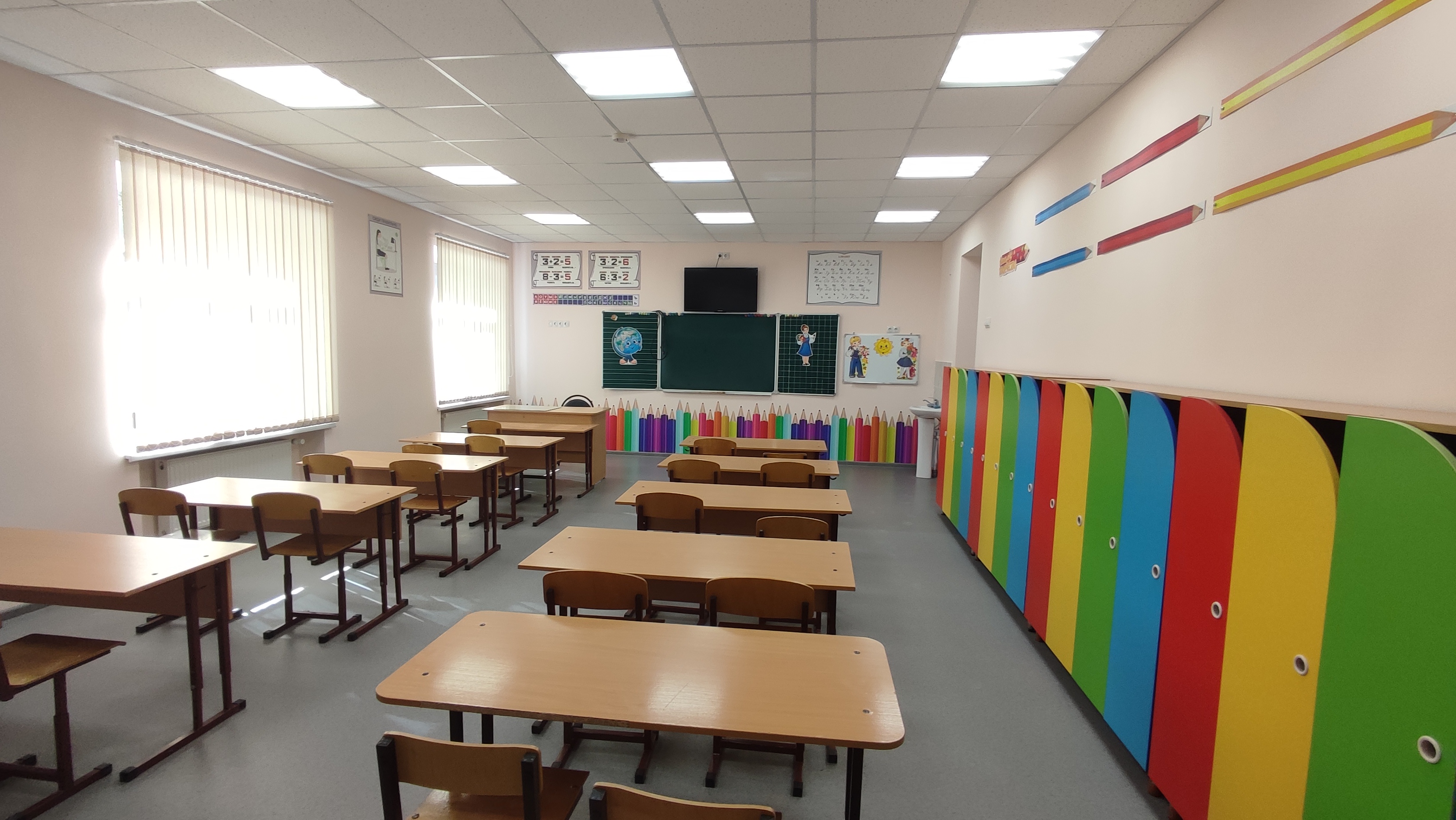 — 8 кабинетов начальных классов (оснащены телевизорами и ноутбуками);